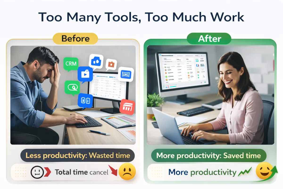 It’s an all-in-one platform that combines CRM, marketing automation, AI chat, voice AI, funnels, and reporting into a single system.