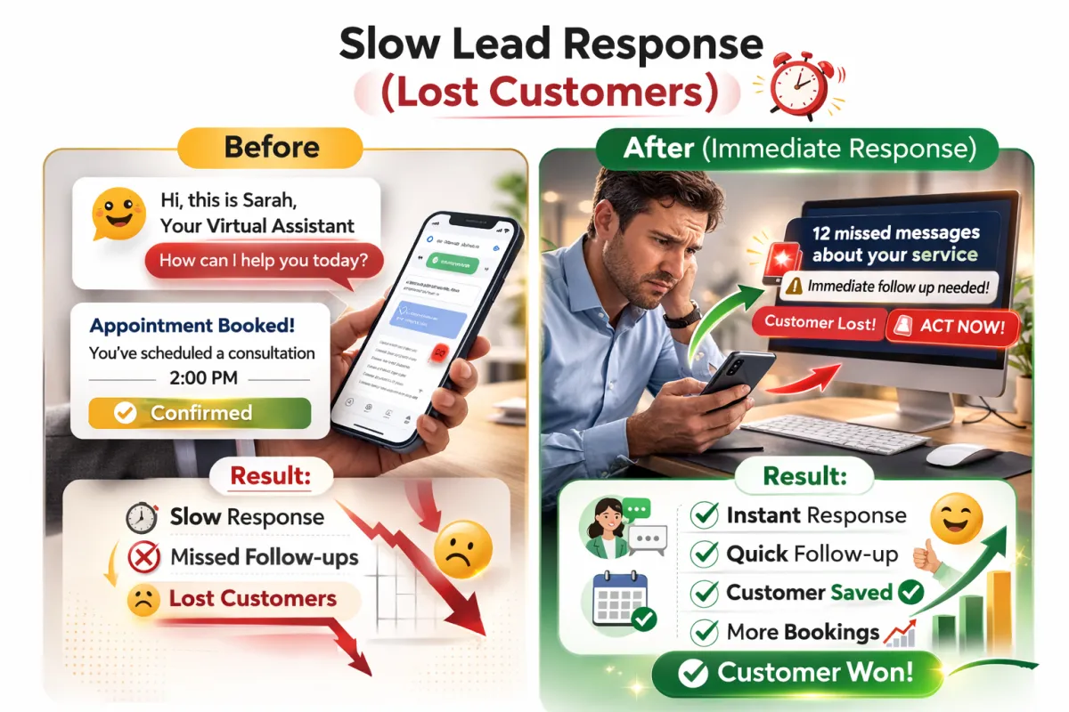 AI responds instantly, qualifies prospects, books appointments, and follows up automatically — preventing lost opportunities.